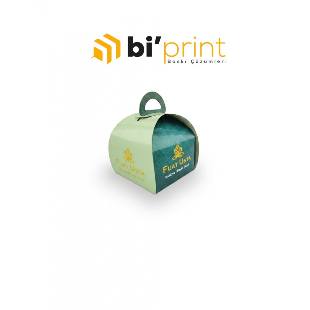 Genel ÖzelliklerBAKLAVA ÇANTASI 1 KG19,5x28,5cm, Yükseklik 18cm250/m2 Bristol KartonRenkli BaskıVara..
